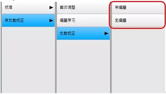 > 使用 “帶負(fù)載校正” 方法,則需要進(jìn)入 “帶偏量” 菜單檢查零點(diǎn)。